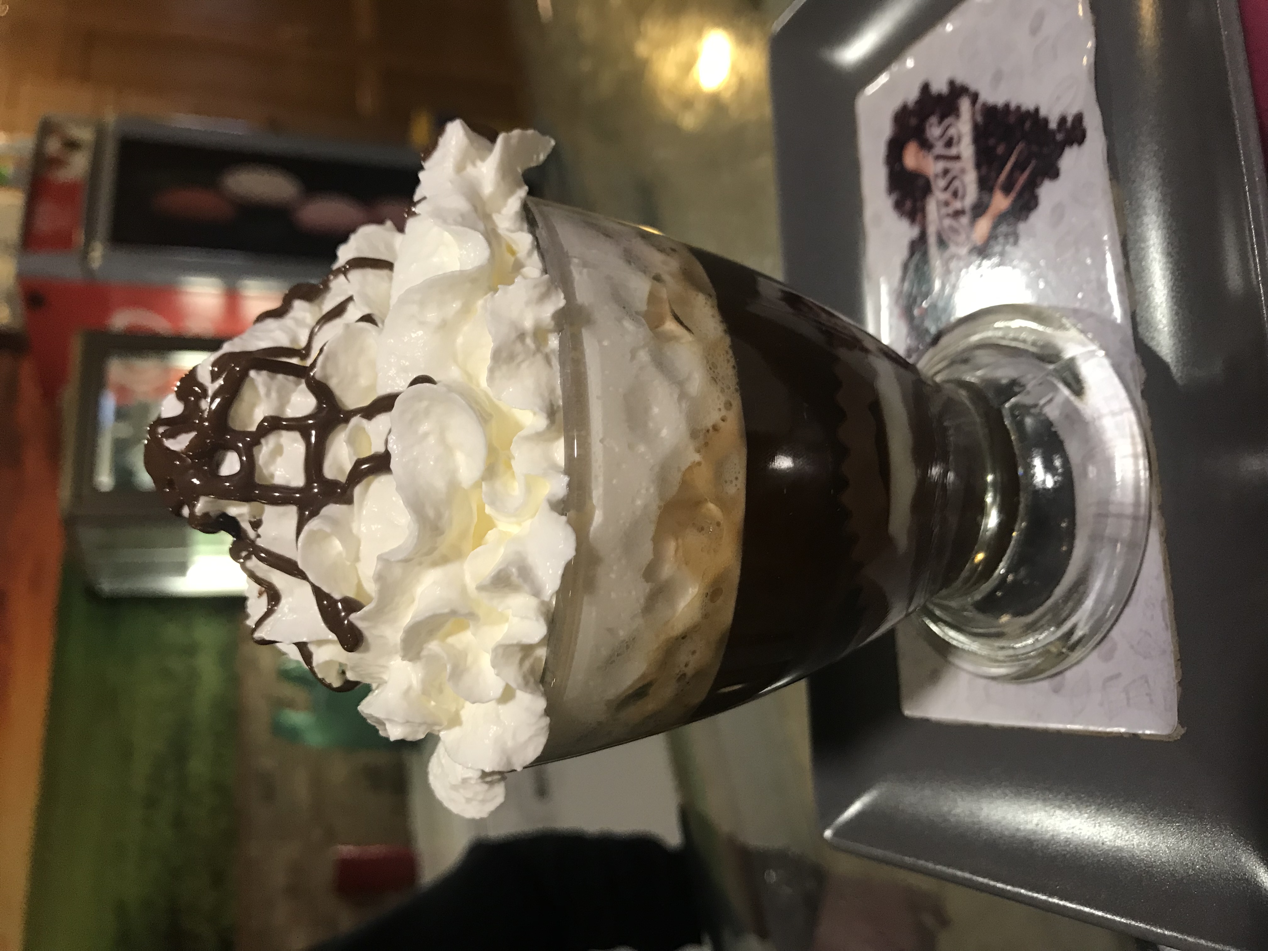 Café, leche, jarabe de cacao y nata o crema batida