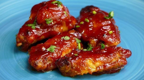 Fried chicken wings in BBQ sauce