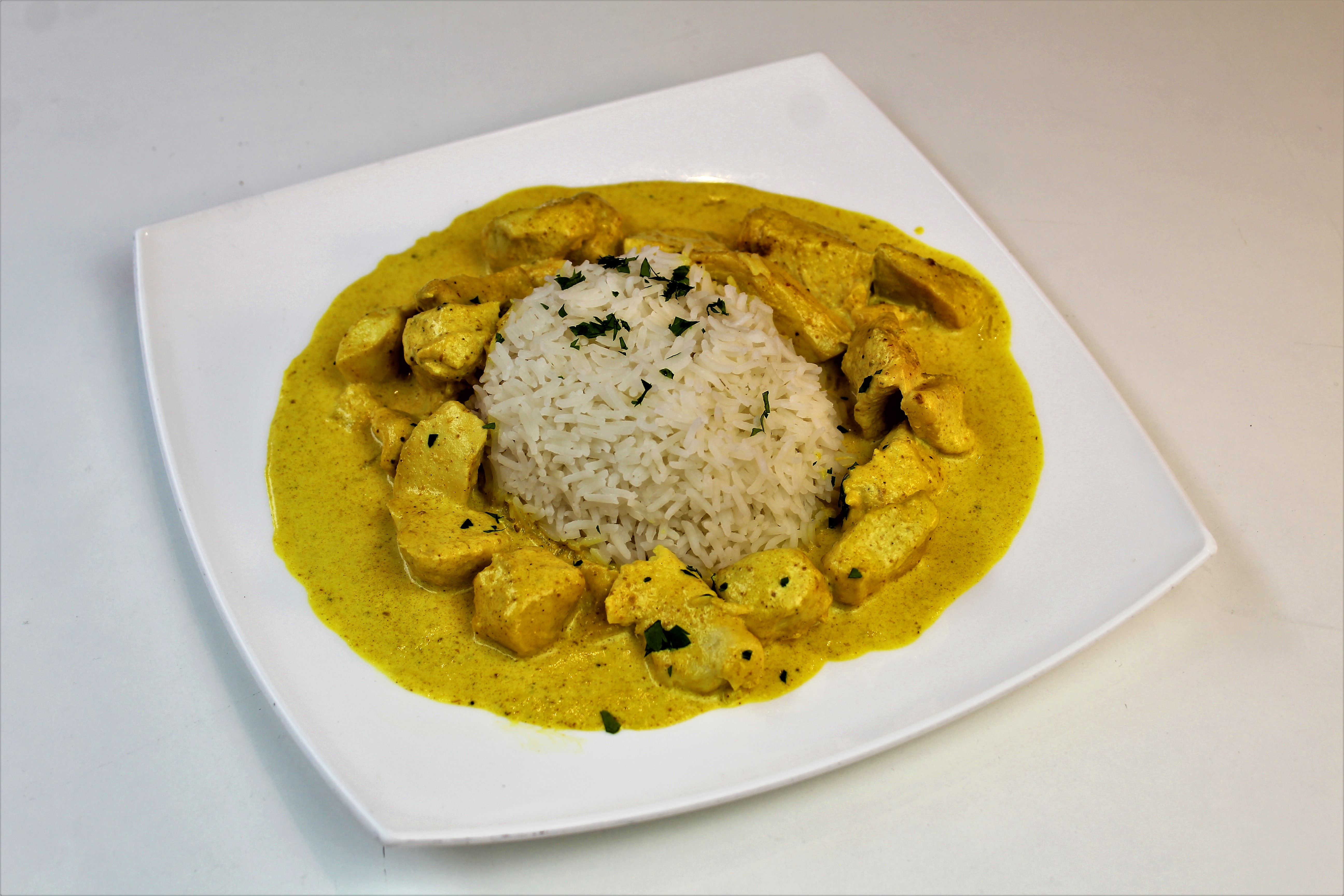 472. Chicken Curry with chips rice